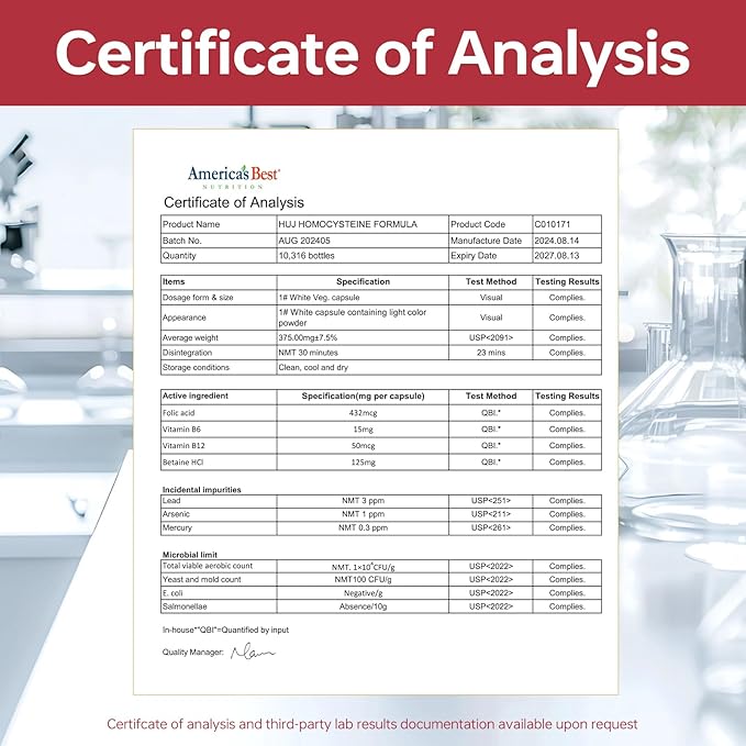 - Product Benefits : Methylation Support, Homocysteine Level Maintenance