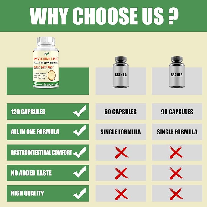 - [Quality Control, Safe And Reliable] Psyllium husk supplements are manufactured in a US GMP certified facility, and psyllium husk capsule is free of GMOs and harmful ingredients. Our production process is closely monitored to ensure that each capsule meets high quality standards. Through this delicate manufacturing process, we are committed to providing consumers with the highest quality and purest health supplements.