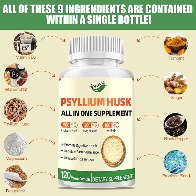 - [Promotes Digestive Health And Overall Comfort] Psyllium husk capsules are the perfect way to start your morning with a healthy start. Whether you take it with your morning coffee or on a busy commute, this psyllium husk fiber supplement is packed with highly purified psyllium husks, which quickly form soluble fiber to help clear intestinal congestion. Added magnesium soothes morning muscle tension, while probiotics act like an intestinal gardener to balance your microflora after breakfast.