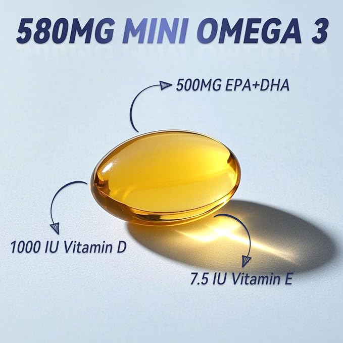 - Supports overall health: 580mg omega 3 fish oil for heart, brain, eyes, immune healthy, 500mg EPA DHA for vision protection