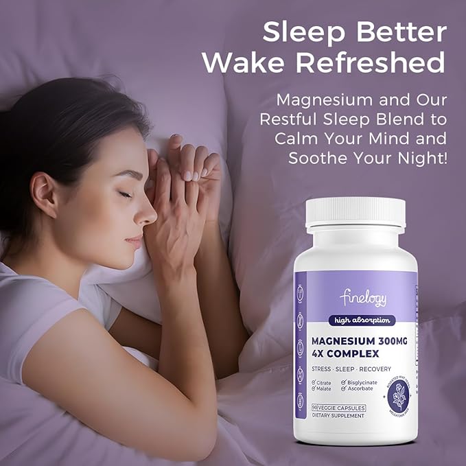 - ENHANCED ABSORPTION: Finelogy's 4X Magnesium Complex provides 300mg of magnesium in four highly bioavailable forms (Bisglycinate, Malate, Citrate, Ascorbate) for rapid and efficient absorption, ensuring maximum efficacy and gentle digestion.