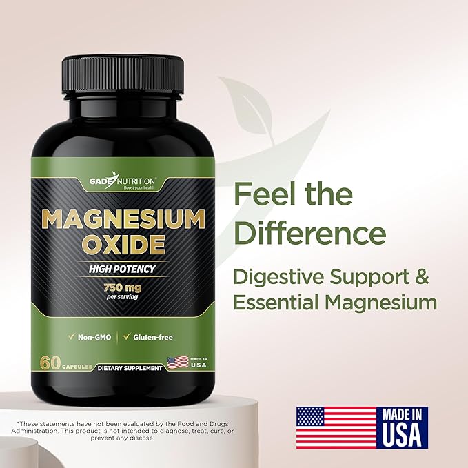 Gade Nutrition Pure Magnesium Oxide | Nature Made Magnesium Supplement in Vegetable Capsules | Magnesium Complex Supplement Made in USA | Great Magnesium for Sleep