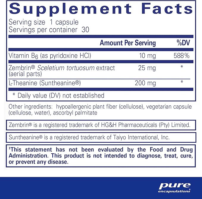 Pure Encapsulations Rapid Calm - Stress & Sleep Support Supplement - Contains Vitamin B6, Zembrin & Suntheanine L-Theanine - Non-GMO, Gluten-Free & Vegan - 30 Capsules