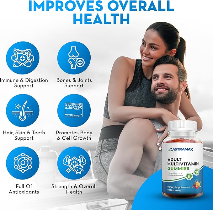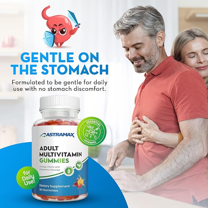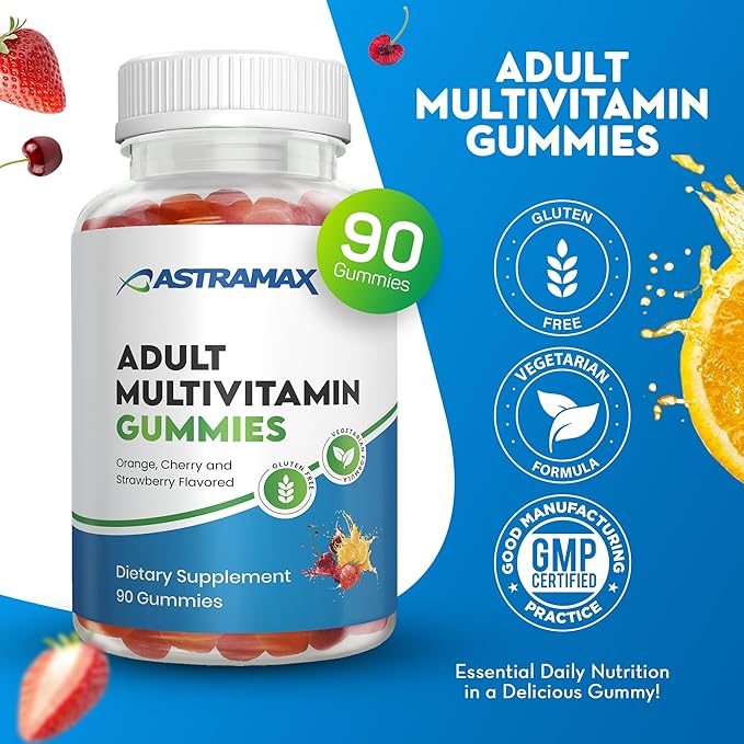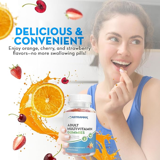 Adult Multivitamin Gummies – 90 Count | Orange, Cherry & Strawberry Flavors | Gluten Free, Vegetarian | Vitamins A, C, D, B12, Zinc | 45–90 Day Supply