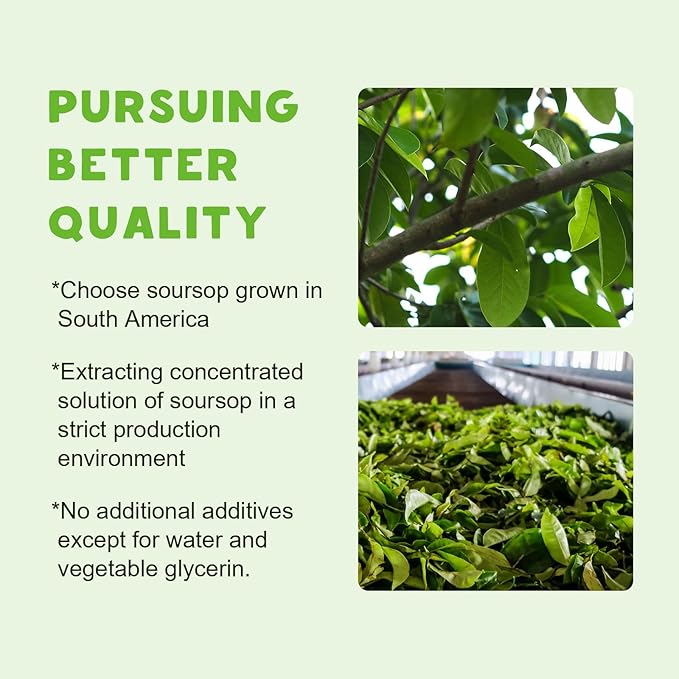 - Easy to absorb and eat: Compared with soursop leaves tea and soursop extract capsules, our soursop liquid drops are convenient to eat, delicious, no need to soak in hot water or swallow the unpleasant capsules and can be added to mix with other foods edible.