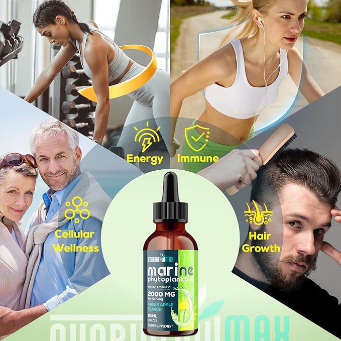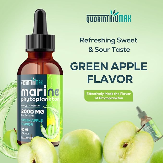 - Refreshing Green Apple Flavor: Unlike typical algae-based supplements, our phytoplankton liquid drops offer a crisp, sweet, and tangy green apple flavor that effectively masks the taste of marine phytoplankton, making daily supplementation effortless and enjoyable. Perfect for those sensitive to strong algae flavors