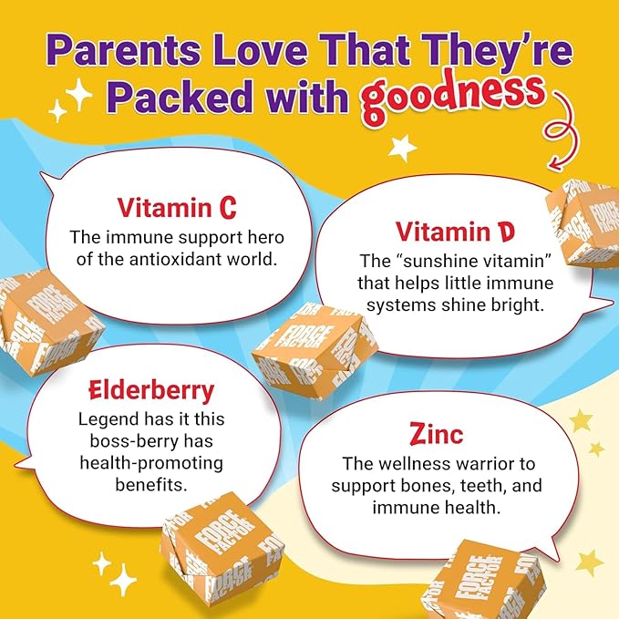 - PACKED WITH GOODNESS: These yummy chews are packed with the goodness of antioxidants from vitamin C and vitamin D, as well as zinc to support your child’s immune health as they age. Best of all, they contain no artificial sweeteners, colors or gelatin.