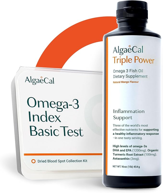ALGAECAL Triple Power: 1200mg EPA & DHA Omega-3s Fish Oil Supplement, Supporting Brain, Heart, Skin & Bones, and Omega-3 Home Test Kit: Easy at-Home Testing with Pre-Paid Return Envelope