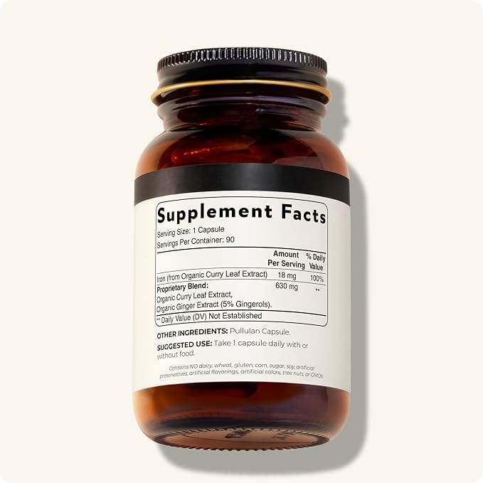 - CERTIFIED ORGANIC: This is an organic iron supplement sourced from organic curry leaves.