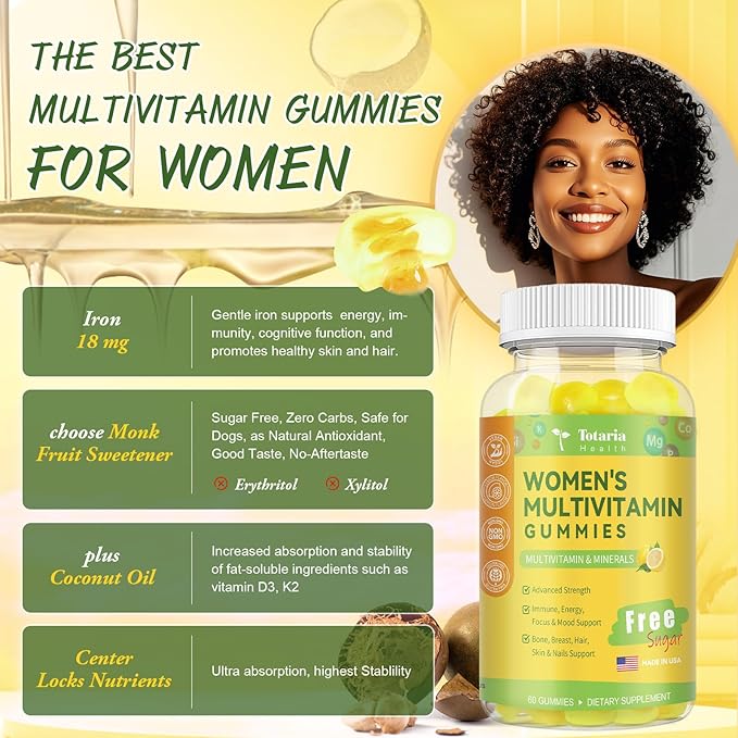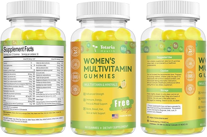 - Essential Minerals for Overall Health: Key minerals such as Calcium, Iron, Magnesium, Zinc, Chromium, Molybdenum, and Potassium are included. These minerals contribute to bone health and immune support. Suitable for Women, ages 14+. Whether you are a 40+, 50+ women, you can feel confident with your health from Totaria multivitamin gummies.