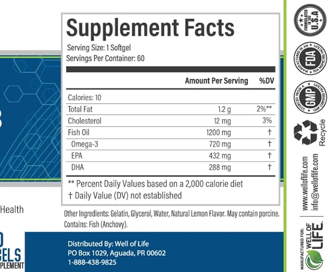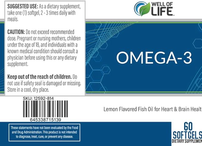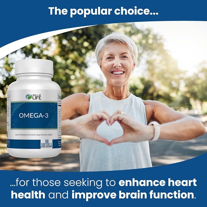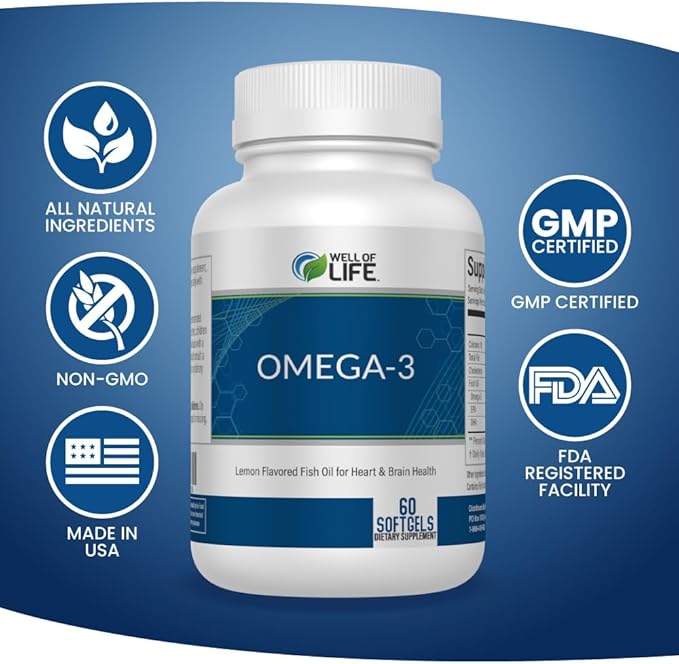 Well of Life Omega-3 Fish Oil – 60 Softgels | High EPA & DHA for Heart and Brain Health | Non-GMO, Premium Fish Oil Supplement | Made in USA, GMP Certified