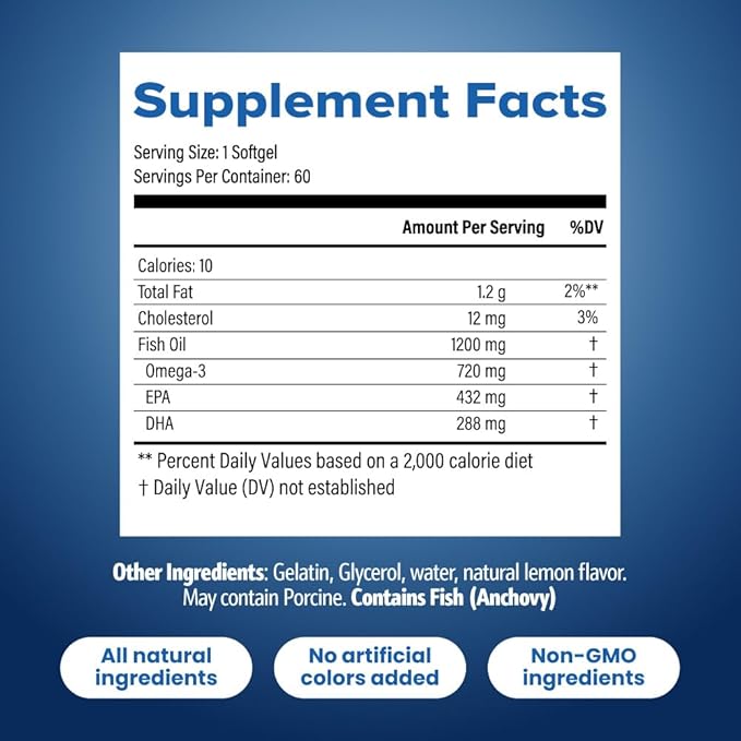- ✔ Pure & Sustainably Sourced – Made from 100% wild-caught pelagic fish, our Omega-3 fish oil is non-GMO, third-party tested, and free from harmful contaminants.