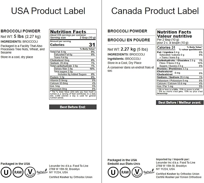 Food to Live Broccoli Powder, 5 Pounds – Nutrient-Rich Green Superfood for Smoothies, Shakes and Cooking, High in Fiber, Vitamins and Antioxidants, Vegan, Kosher, Bulk