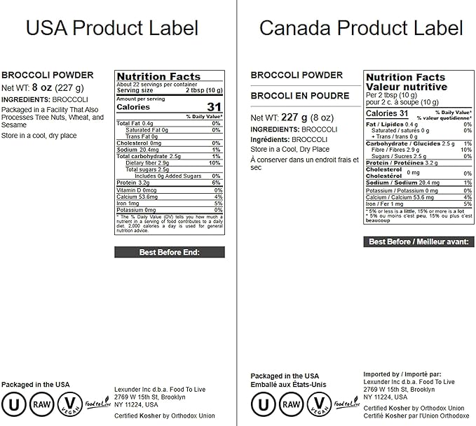 Food to Live Broccoli Powder, 8 Ounces – Nutrient-Rich Green Superfood for Smoothies, Shakes and Cooking, High in Fiber, Vitamins and Antioxidants, Vegan, Kosher, Bulk