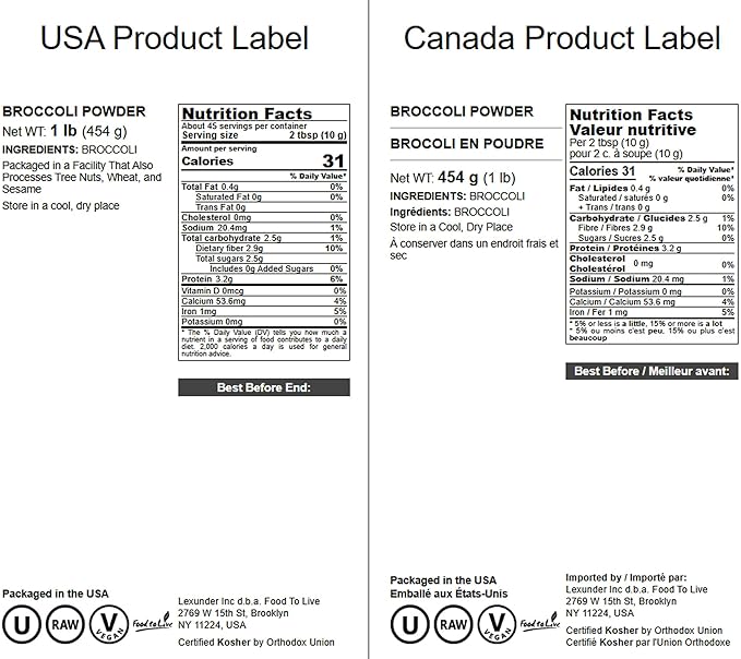 Food to Live Broccoli Powder, 1 Pound – Nutrient-Rich Green Superfood for Smoothies, Shakes and Cooking, High in Fiber, Vitamins and Antioxidants, Vegan, Kosher, Bulk