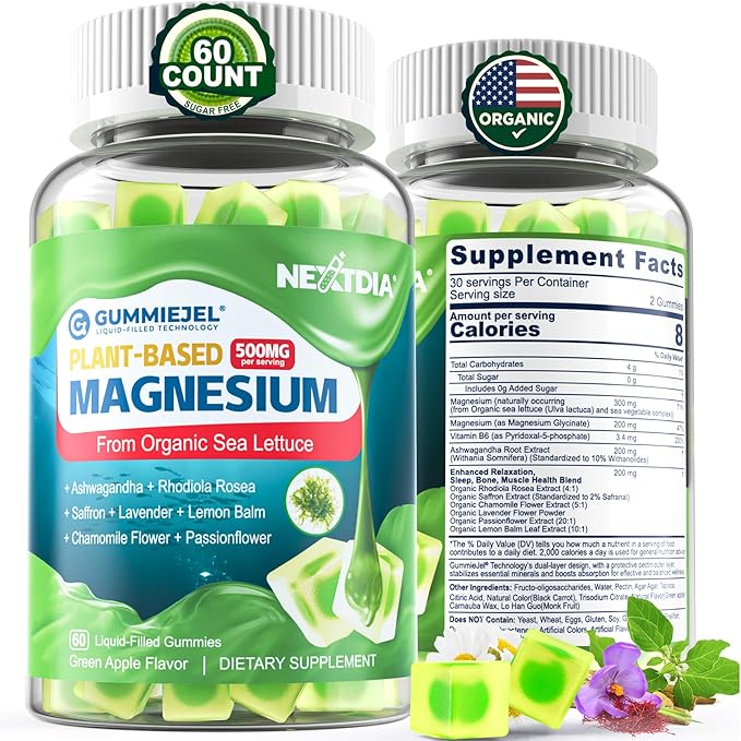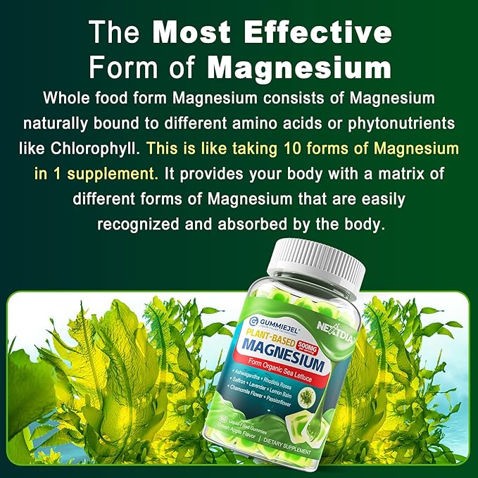 - ORGANIC, PLANT-BASED MAGNESIUM: NextDia's plant-based magnesium supplement is sourced from organic sea lettuce from France. It is rich in over 70 minerals and other nutrients. This plant-derived magnesium consists of magnesium naturally bound with various amino acids or chlorophyll and other plant nutrients. It provides the body with a matrix of different magnesium types, making it easily recognizable and absorbable by the human body.
