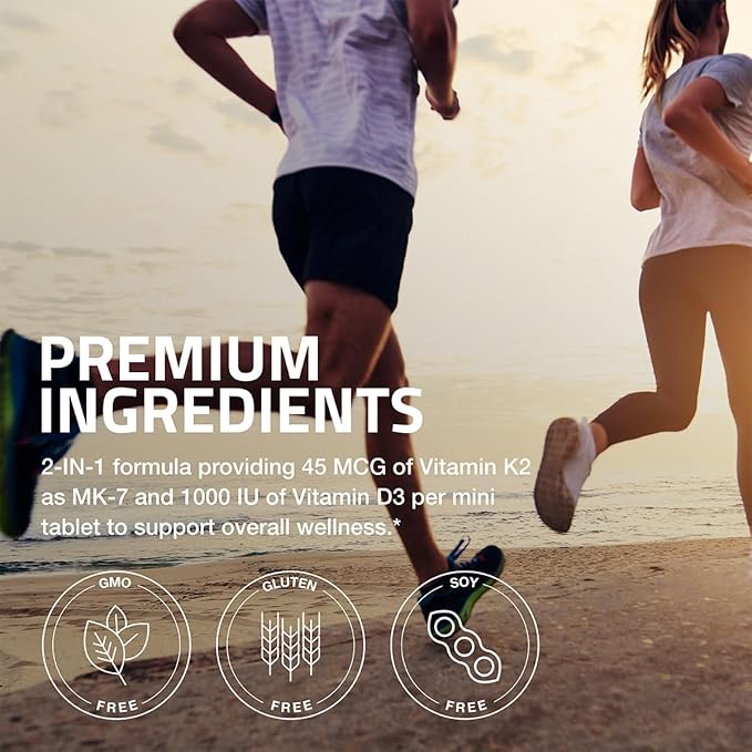 - 2 IN 1 Formula: Vitamin K2 & D3 were simply meant to be together. While the benefits of Vitamin D are well known, many don’t realize that Vitamin D utilizes Vitamin K2 to help maximize its benefits. Bronson Vitamin K2 + D3 Minis provides Vitamin K2 as MK-7, which promotes superior bioavailability compared to other forms of Vitamin K.