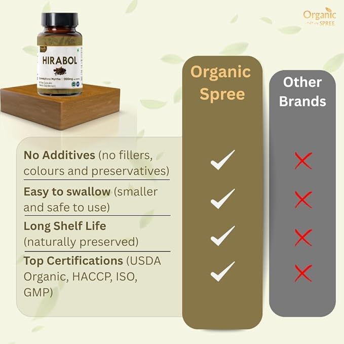 - Made with Goodness: Organic Spree Hirabol Capsules are suitable for both vegetarians and vegans, and contain no artificial colors, flavors, or preservatives. Experience the benefits of Hirabol in every capsule. *