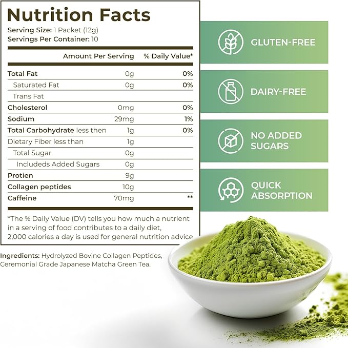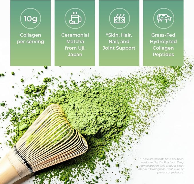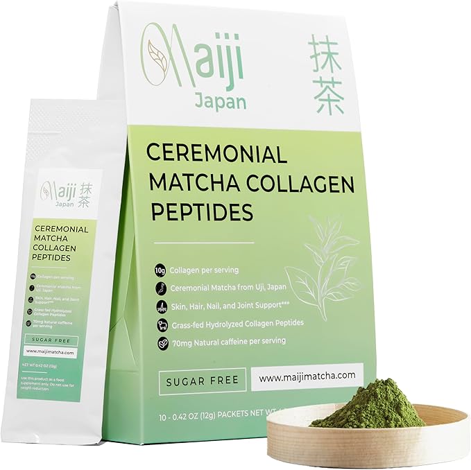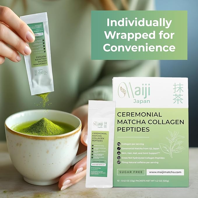 Japan Matcha Collagen Peptides Powder Supplement, Ceremonial Grade Matcha Green Tea Powder, Convenient Individual Travel Sized Package, 4.2oz