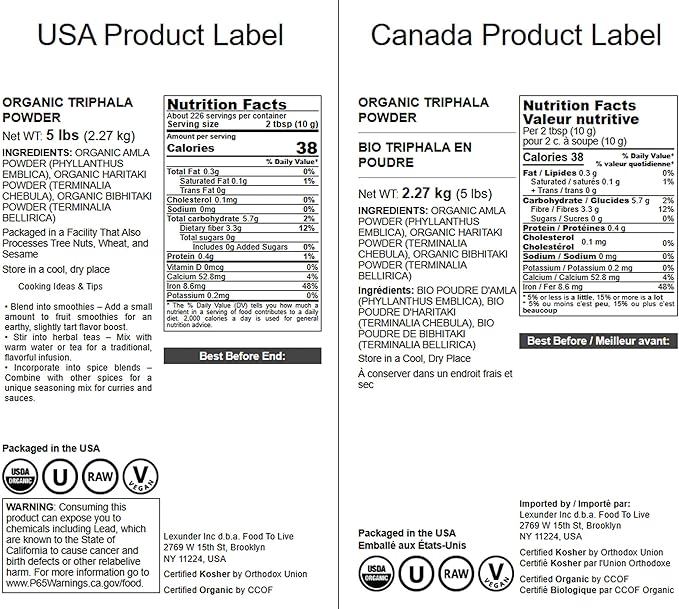 Food to Live Organic Triphala Powder, 5 Pounds – Natural Detox, Blend from Fruits Amalaki, Haritaki and Bibhitaki, Non-GMO, Perfect for Tea and Smoothies, Vegan, Kosher, Bulk