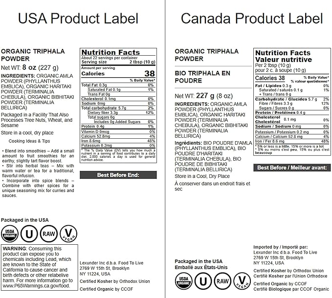 Food to Live Organic Triphala Powder, 8 Ounces – Natural Detox, Blend from Fruits Amalaki, Haritaki and Bibhitaki, Non-GMO, Perfect for Tea and Smoothies, Vegan, Kosher, Bulk
