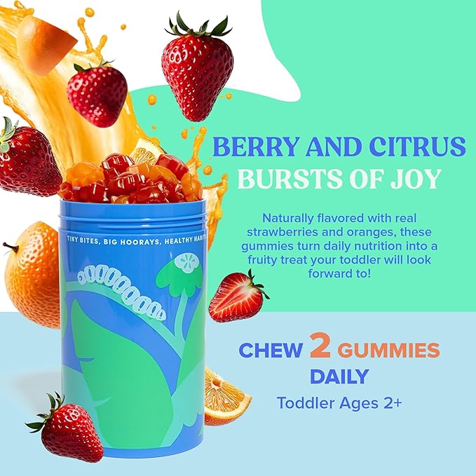 - Support Growing Bones and Teeth: Our First Day multivitamin gummies for toddlers ages 2 and 3 are packed with vegan Vitamin D3 to promote healthy bones and teeth development, essential for active and adventurous little ones. Let your child thrive with a solid foundation of wellness that also supports optimal calcium and phosphate levels needed for strong bone mineralization, setting the stage for a healthy future.