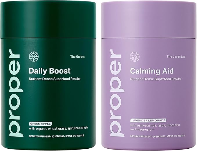 Proper Wellness Bundle – Daily Greens & Relaxation Drink Mix | Organic Superfood Powder with Probiotics & Calming Aid with Magnesium & Adaptogens | Supports Digestion, Sleep & Stress Relief