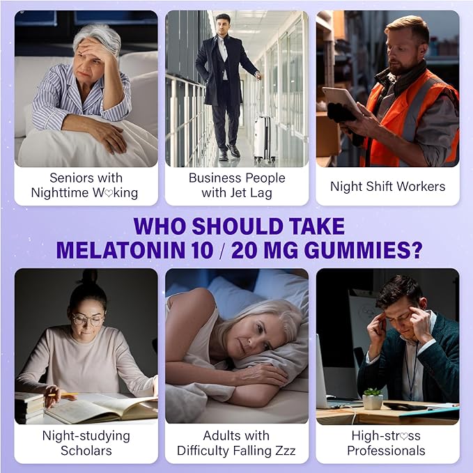- FOCUS ON QUALITY AND HEALTH:Our delicious chewable melatonin gummies 20mg / 10 mg are a healthy treat for women and men! Each gummy is packed full of natural and clean ingredients and contains No GMOs, gluten, gelatin, artificial colors, flavors or preservatives, and will NOT BURDEN the body. They are certified by GMP and rigorous third-party testing to ensure purity, efficacy, and safety. If you have any questions about our products, please contact us promptly.