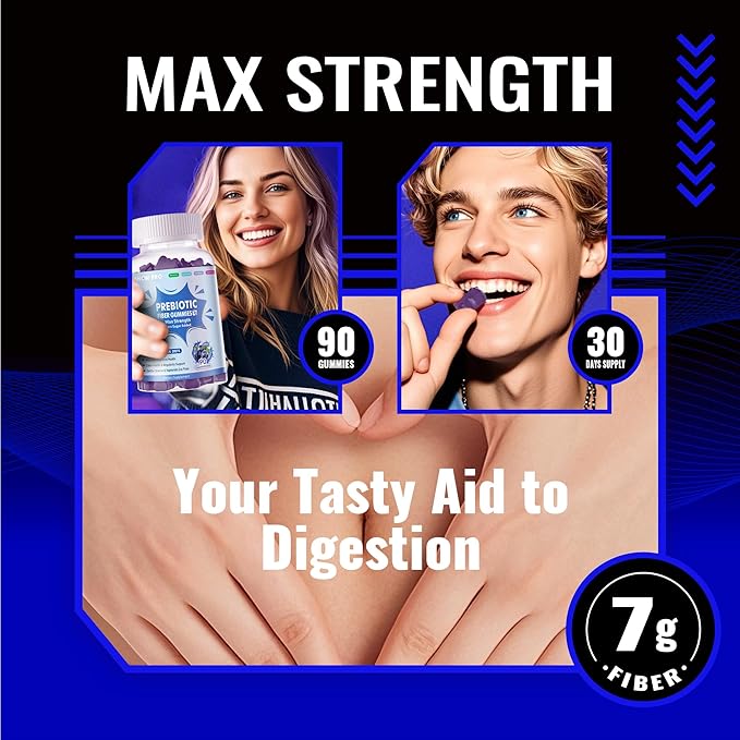 - Prebiotic Fiber: Packed with 7g of prebiotic fiber per serving, these gummies support digestive health and regularity.