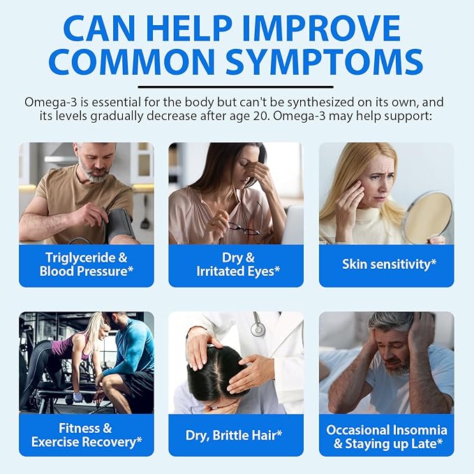- Target User: Only 2 fish oil capsules a day to helps meet your omega-3 DHA and EPA fatty acid needs,suitable for adults of all ages such as athletes, seniors, and anyone seeking to enhance their overall well-being