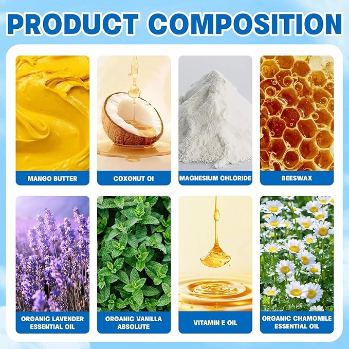 - 【Quickly Absorbed & Non-greasy】- Our magnesium lotion is quickly absorbed into the skin and won't feel greasy when used, providing a comfortable experience and a light fragrance. Our magnesium body butter provide soothing and nourishing care for your little ones.