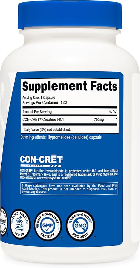 Nutricost Creatine HCl 120 Capsules - Made with CON-CRET Creatine, 750 MG Per Capsule