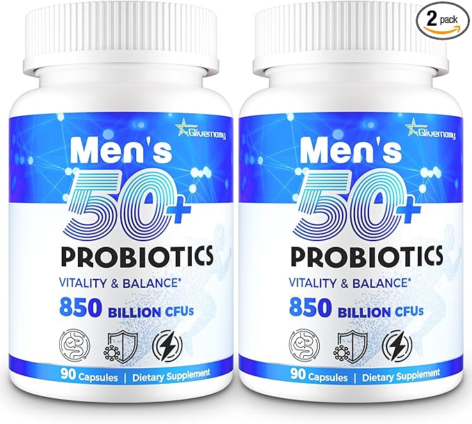 - Formulated for 50+ Men's Needs: As men age, Men’s bodies and digestive systems have specific needs due to poor diet, stress, and tobacco or alcohol use. We've meticulously developed the Men's 50+ Vitality & Balance Probiotic, a high-potency, 850 Billion CFU probiotics for men, addresses gut health, energy*, metabolic balance. Our mens probiotic designed specifically for the unique health concerns of men over 50