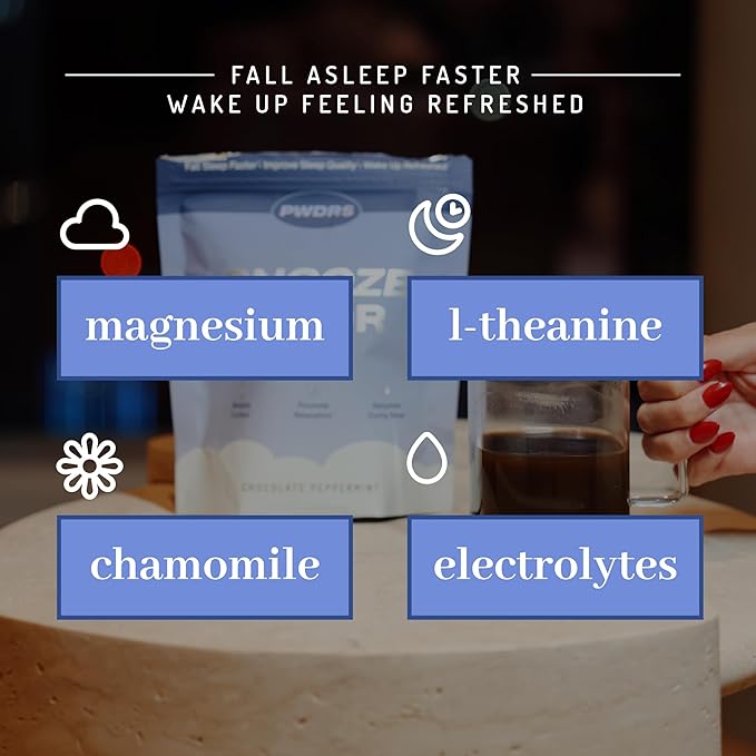 PWDRS Snooze Sleepy Time Hot Chocolate | All Natural Sleep Support | Magnesium Glycinate, L Theanine, Chamomile, Electrolytes | 20 Calories, Non GMO | Chocolate Peppermint