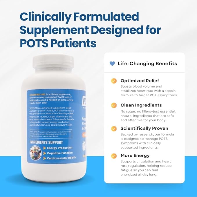- ESSENTIAL POTS MANAGEMENT: Formulated to help regulate blood flow, hydration, and nervous system balance for those managing Postural Orthostatic Tachycardia Syndrome (POTS). Our targeted blend of vitamins, minerals, and adaptogens supports daily well-being and symptom relief.