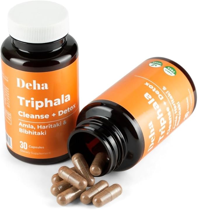 Triphala Capsules Immune Support & Digestive Health with Amla, Haritaki & Bibhitaki – Gut Cleanse, Detox, Bloating Relief – GMP Certified, Non-GMO, Vegan – 30 Count