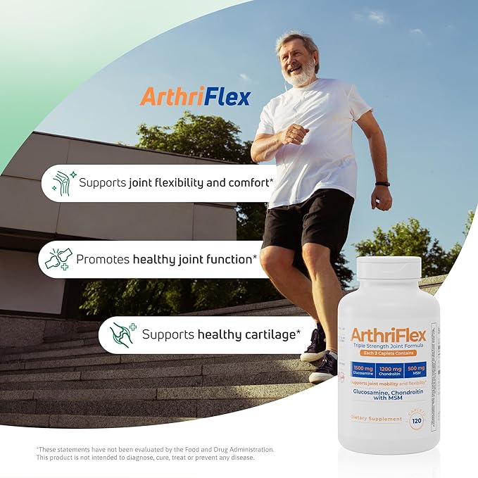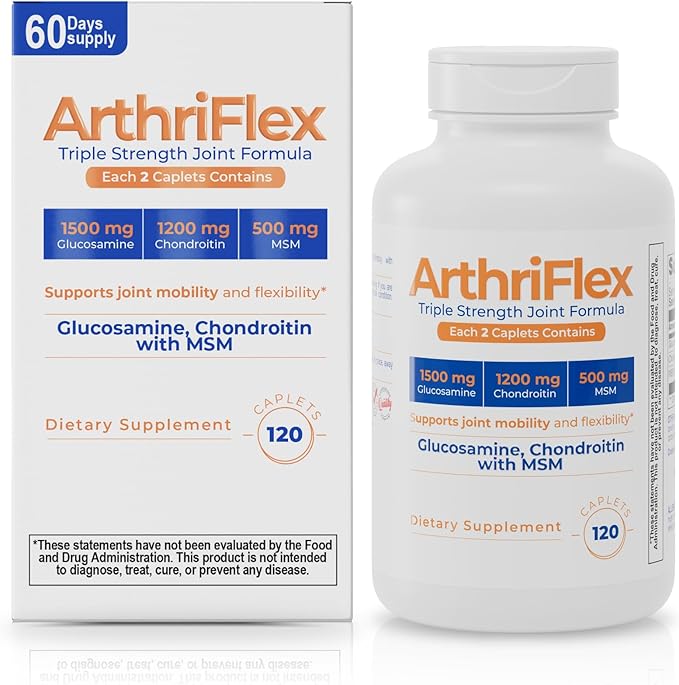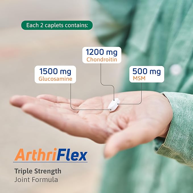 ArthriFlex Glucosamine Chondroitin MSM – Triple Strength Joint Support – Chondroitin Sulfate & MSM – Move Free & Heal and Soothe Arthritis Supplement – 120 Caplets for Mobility & Flexibility