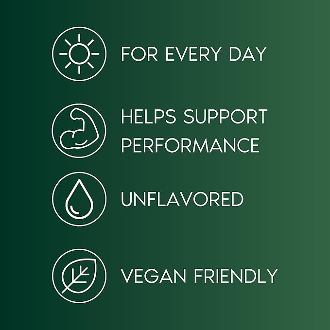 - Unflavored & Versatile: This neutral-tasting, vegan supplement is completely flavorless and ideal for any drink or recipe. Free from gluten, dairy, soy, sugar, tree nuts, peanuts, and sesame, it’s perfect for those with dietary restrictions or specific lifestyle needs.