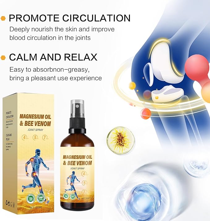 Magnesium Joint Spray, Magnesium Oil Bee Venom Joint Spray, for Relaxing and Joint Repair, Fast Absorbent, Non-Greasy (100ml/3.38oz) (2)