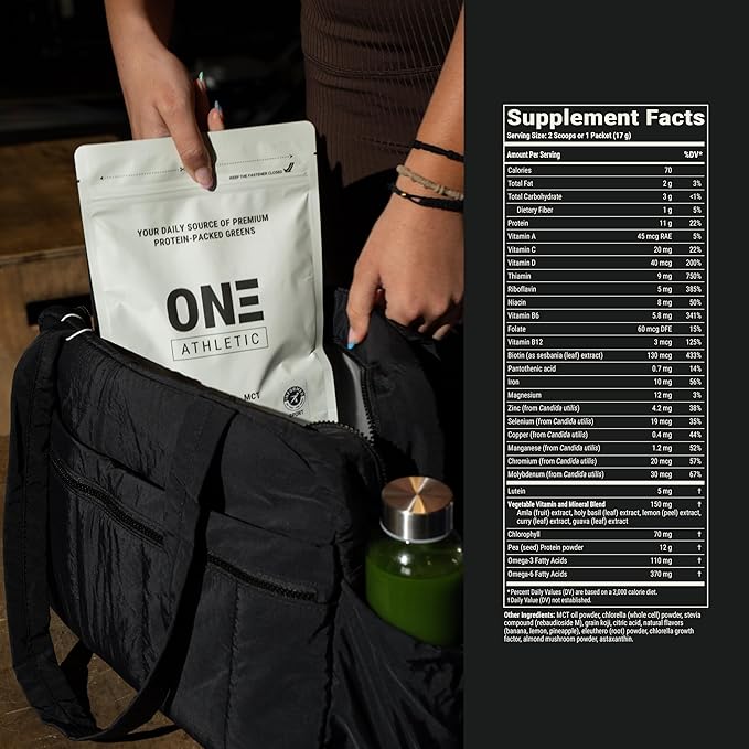 ON3 Athletic Protein Greens Supplement with chlorella, eleuthero and MCT Powder, 30-Day Supply 510g, 18oz