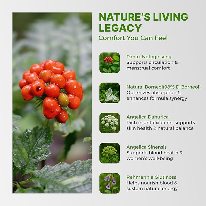 Women’s Cycle Ease - PMS and Menstrual Support Inspired by Chinese Herbal Wisdom for Hormonal Balance & Inner Calm - with Dong Quai & Notoginseng - Made in USA - 60 Vegan Capsules