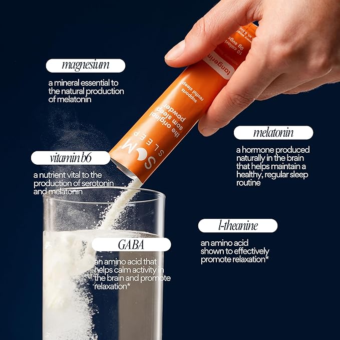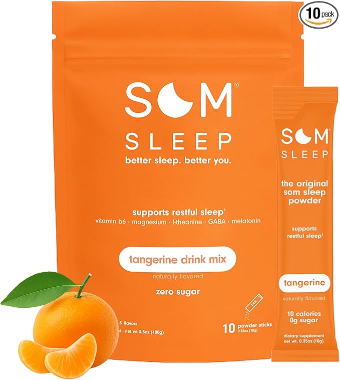 Som Sleep, Calm Sleep Aid Powder Drink Mix w/Magnesium, Melatonin 3mg, Vitamin B6, L-Theanine & GABA – Vegan, Zero Sugar – Tangerine, 10-Pack