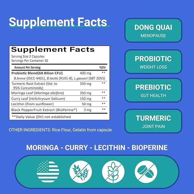 - ✅ Premium Formula, Proven Ingredients Features the same 68B CFU probiotics, turmeric, and moringa blend used in high-end menopause supplements—without the $50+ price tag.