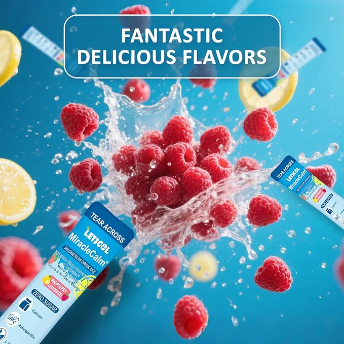 - Versatile and Convenient: Enjoy the delicious raspberry lemonade taste of our MiracleCalm magnesium powder by mixing 1 packet with water, coffee, or your favorite beverage. This on-the-go solution can easily be added to your daily routine for stress relief and increased vitality.