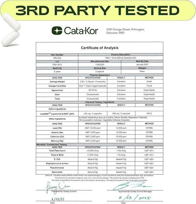 - TESTED IN THE USA: Our LipoNAD supplement is third-party tested in the USA to ensure its purity and effectiveness. Certificate available upon request.