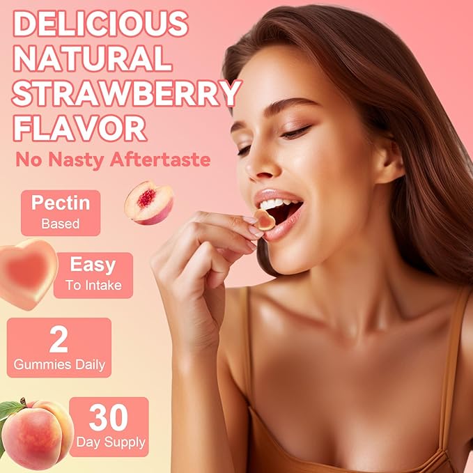 - Premium Guarantee: The delicious natural peach flavor easily provides the beneficial nutrients you need in your busy life. Chew two gummies a day. Gluten-free and vegetarian, No dairy, wheat, peanut, or egg. 100% VEGAN. If you have any questions, please contact us, your satisfaction is our TOP priority.