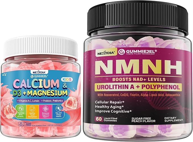 NAD+ Supplement for Women with Urolithin A, Polyphenol Complex, Resveratrol + Kids Calcium Gummies