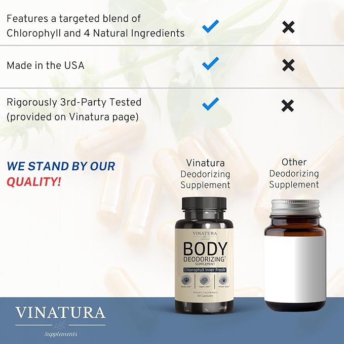 - Body Odor Supplements - This formula combines chlorophyll mint parsley pills to support fresh breath, body confidence, and natural deodorizing from within.