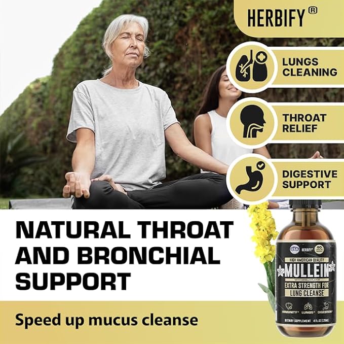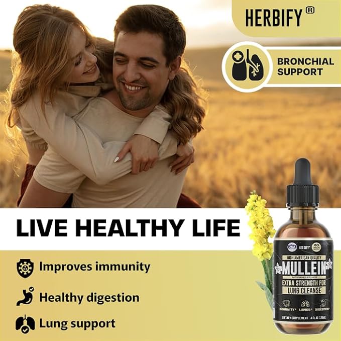 - Powerful lung complex blend provides significant improvement for your respiratory system. We use the finest leaves and flowers of Mullein herb. Enjoy the liquid supplement with the highest concentration of Mullein.