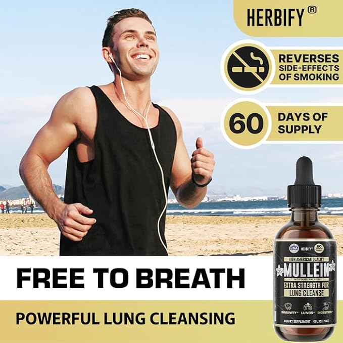 - Powerful lung complex blend provides significant improvement for your respiratory system. We use the finest leaves and flowers of Mullein herb. Enjoy the liquid supplement with the highest concentration of Mullein.